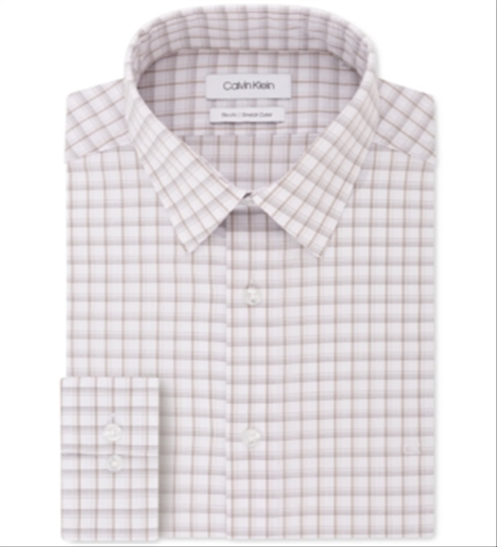 The refined slim-fit and updated check pattern of this Calvin Klein dress shirt offer to put a modern face on your professional look while a flex collar adds an enticing element of comfort