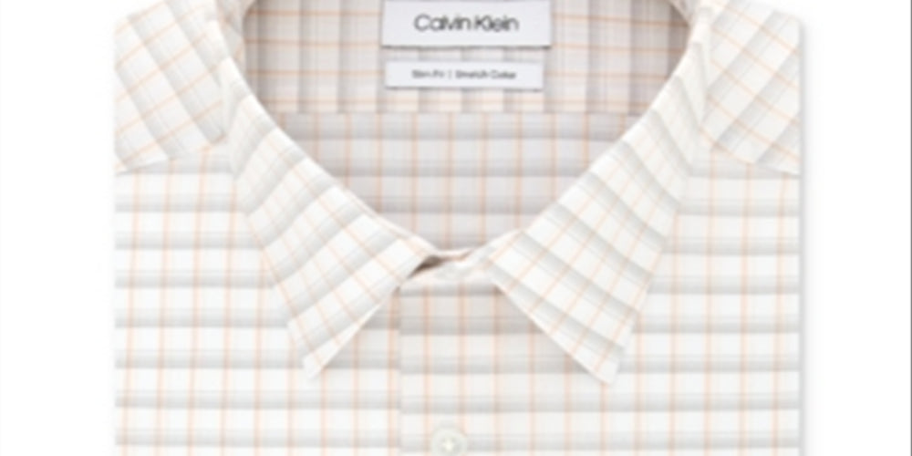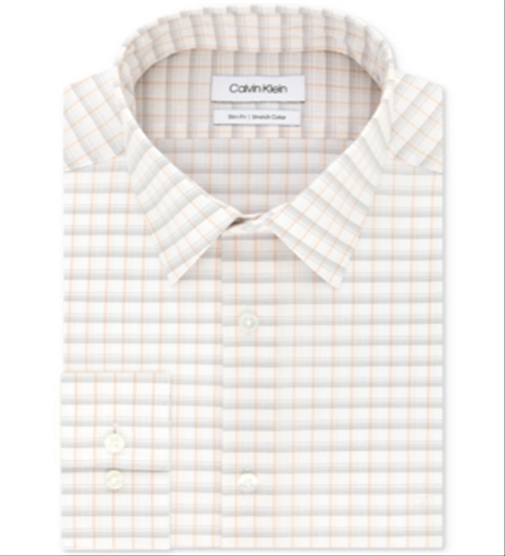 Calvin Klein Men's Slim Fit Stretch Collar Check Dress Shirt Orange Size 15.5X34X35