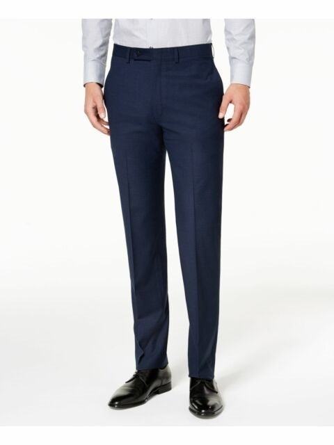 Calvin Klein Men's Slim Fit Stretch Mini Grid Dress Pants Navy Size 40X30