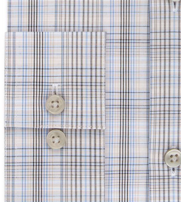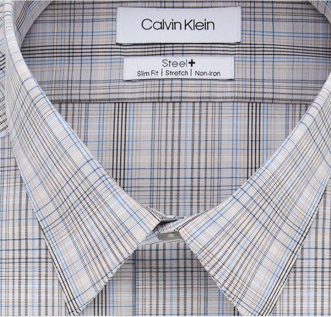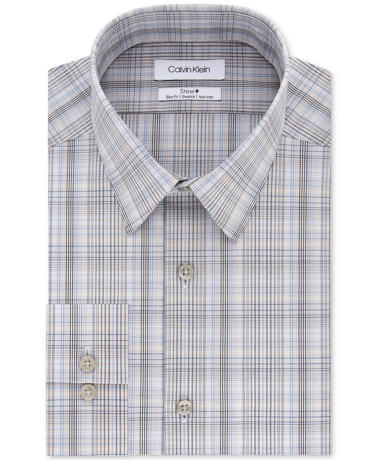 Calvin Klein Men's Slim Fit Stretch Performance Plaid Dress Shirt Beige Size 16.5X32X33