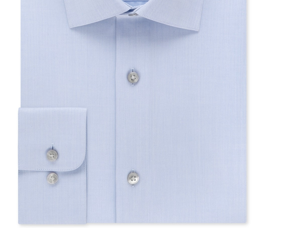Calvin Klein Men's Steel Classic Fit Non Iron Performance Herringbone Spread Collar Dress Shirt Blue Size 16.5X32-33