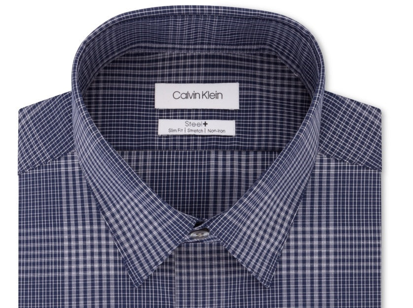 Calvin Klein Men's Steel Slim Fit Stretch Dress Shirt Blue Size 17.5X32X33