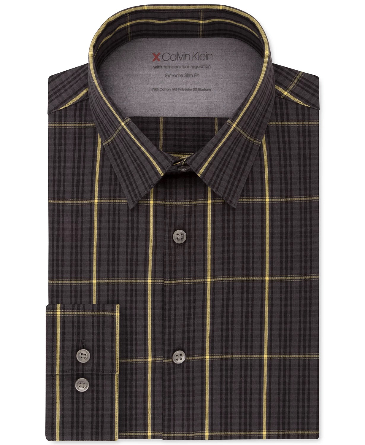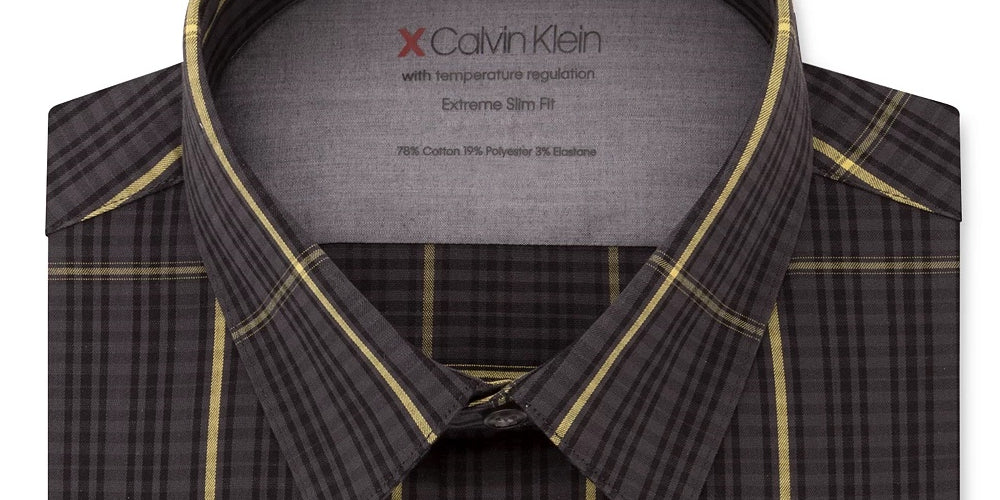 Calvin Klein Men's Windowpane Plaid Collared Slim Fit Dress Shirt Grey Size 14x32-33