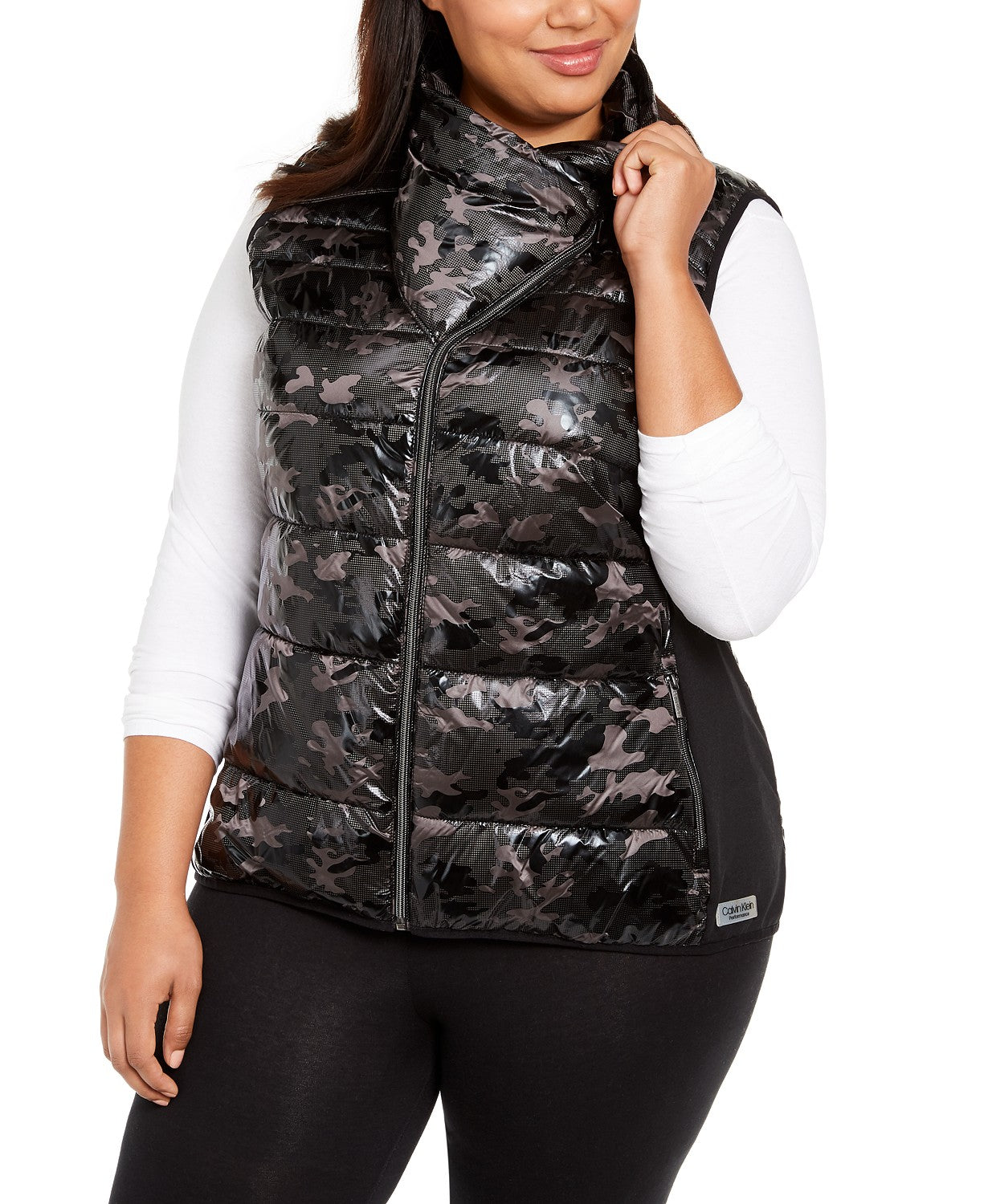 Approx. model height is 5'10" and she is wearing a size 2X|Surplice neckline; zipper-front closure|Stretch insets at waist|Zipper pockets at hips|Nylon; trim: polyester/spandex; fill: polyester|Hand wash|Imported