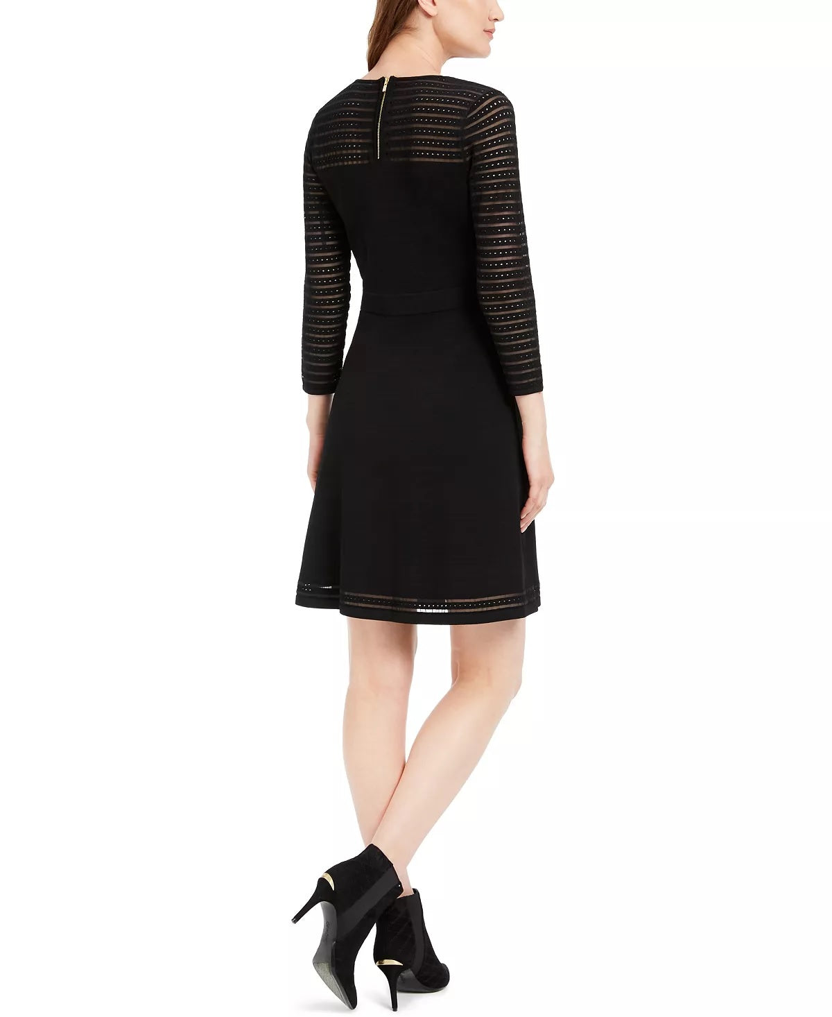 Calvin Klein Women's 3/4 Sleeve Jewel Neck Short Fit Flare Dress Black Size PXS