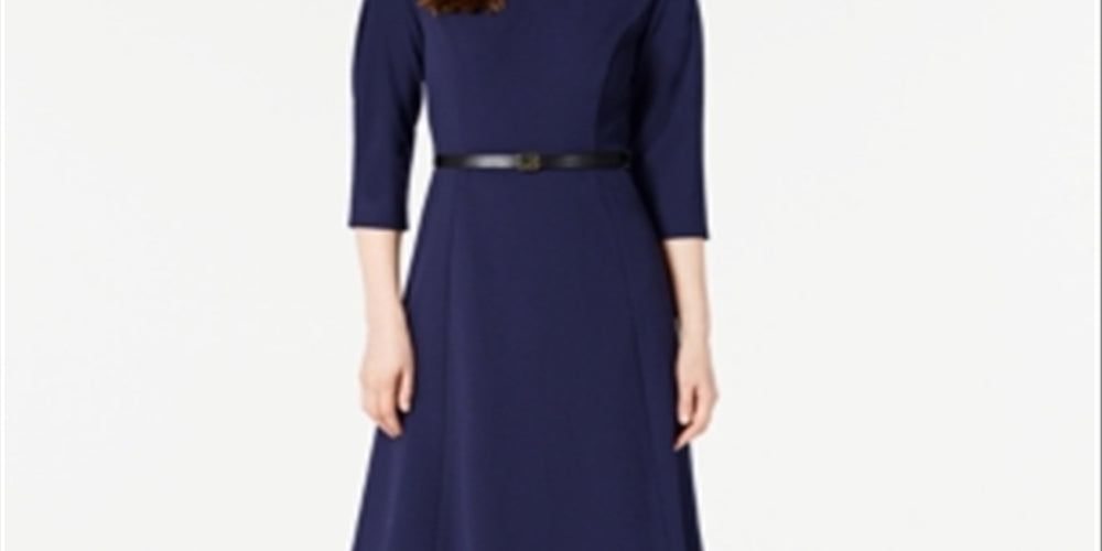 Calvin Klein Women's Belted a Line Dress Blue Size 10P