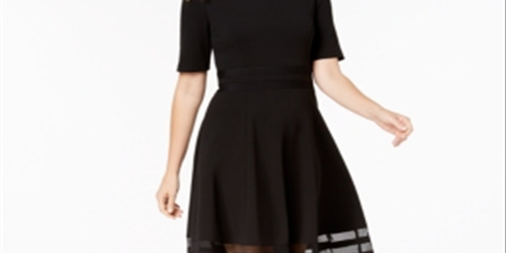 Calvin Klein Women's Elbow Sleeve Illusion-Detail Dress Black Size 6 Petite