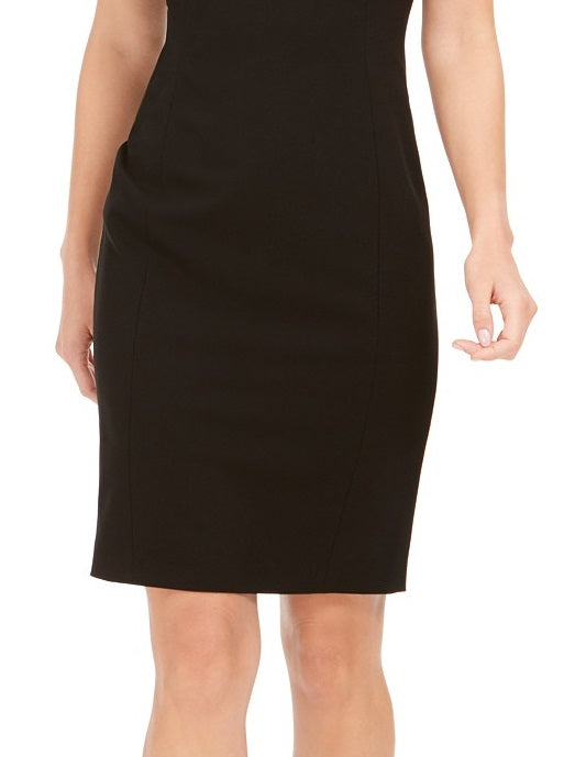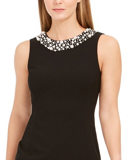 Calvin Klein Women's Petite Imitation Pearl-Trim Sheath Dress Black Size 8 P