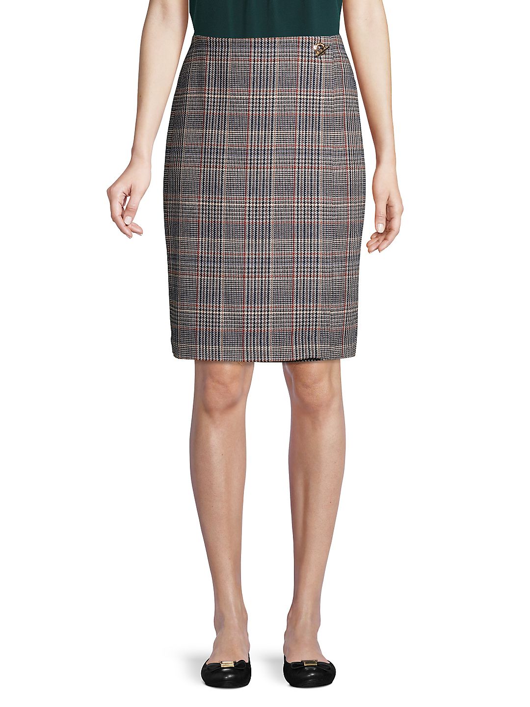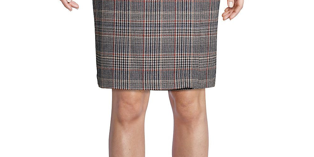 Calvin Klein Women's Plaid Tweed Pencil Skirt Brown Size 10