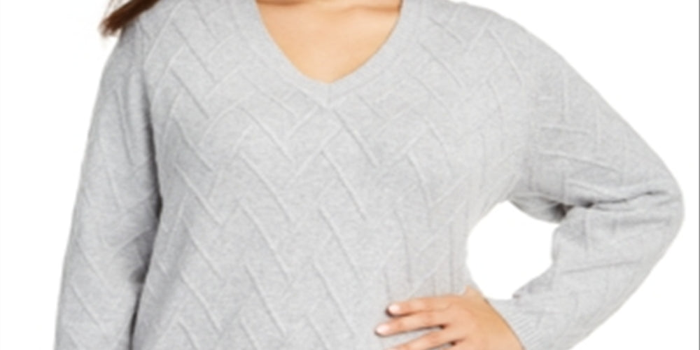 Textured with chevron stitching| tone-on-tone diagonal lines energize the soft style of this Calvin Klein plus size V-neck sweater