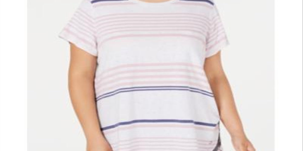 Calvin Klein Women's Plus Vista Striped T-Shirt Pink Size 2X