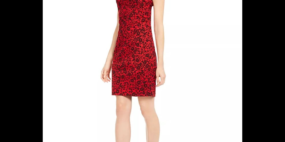 Calvin Klein Women's Printed Sheath Dress Red Size 6 Petite