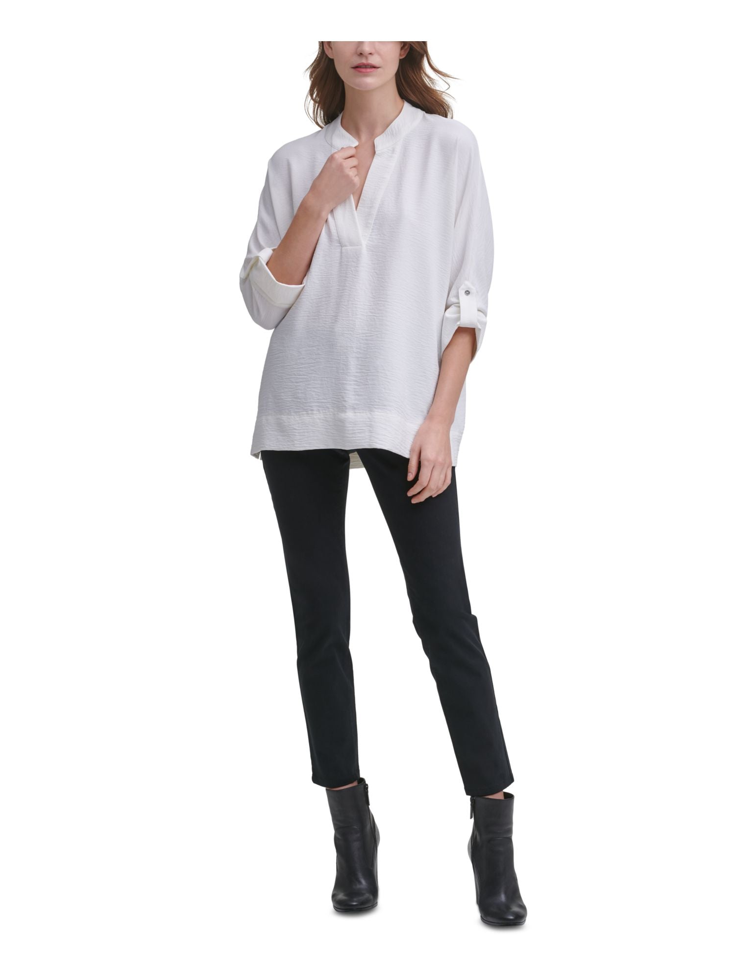 CALVIN KLEIN|Style; Top|Occasion; Casual|Size; M|Material; 100% Polyester|Color; White|Split