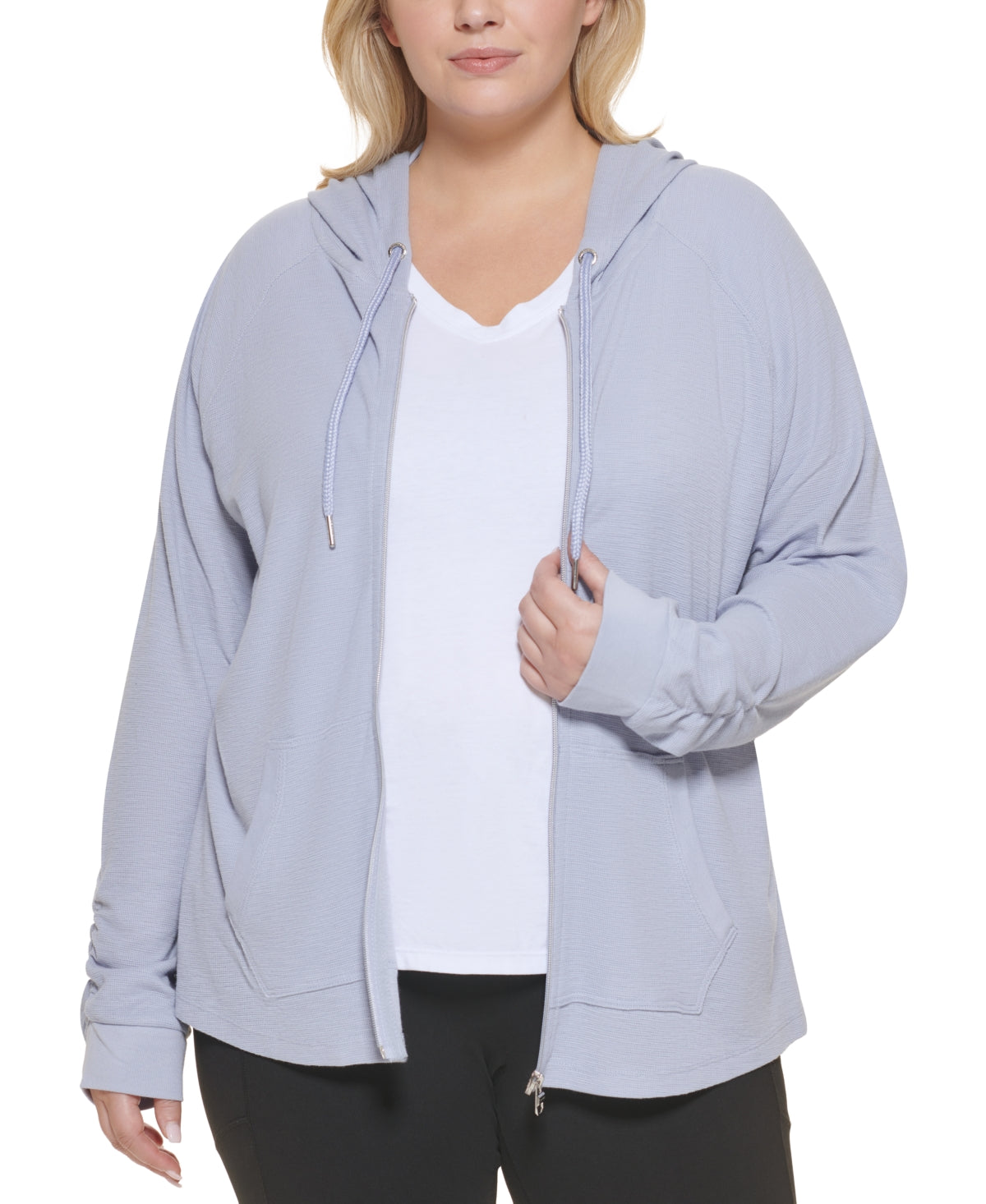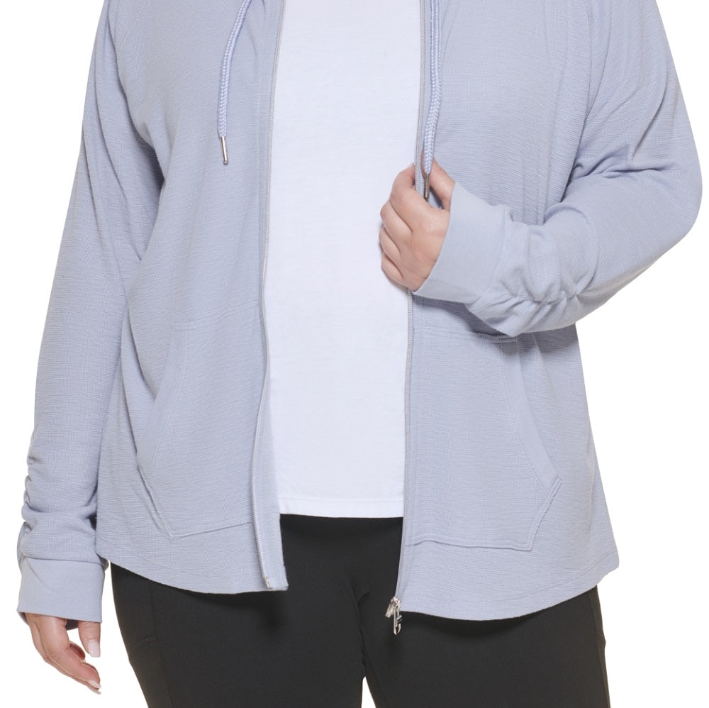 Calvin Klein Women's Ruched Sleeve Zip Hoodie Gray Size 1X