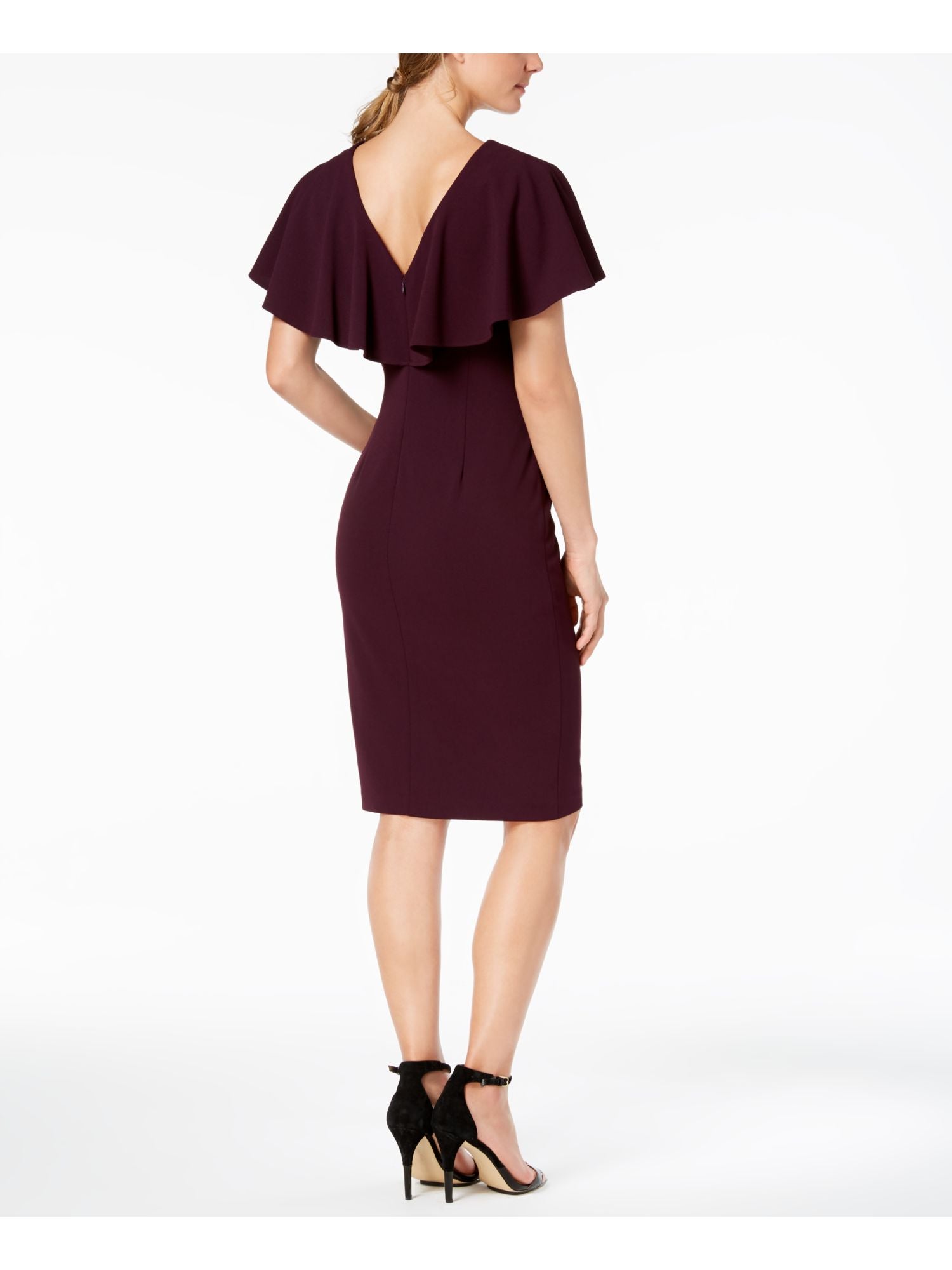 Calvin Klein Women's Short Sleeve Jewel Neck Above the Knee Sheath Evening Dress Purple Size 4