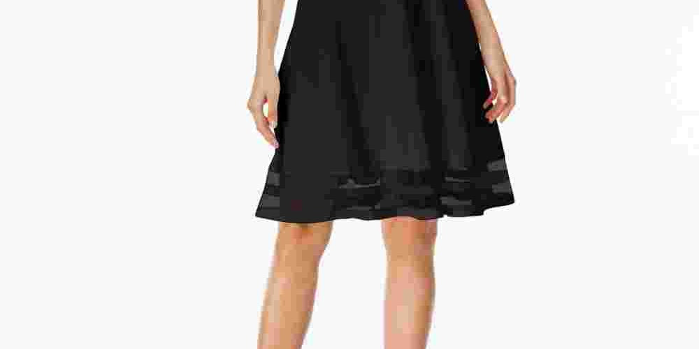 Calvin Klein Women's Sleeveless Jewel Neck Knee Length Fit + Flare Dress Black Size 4 Petite