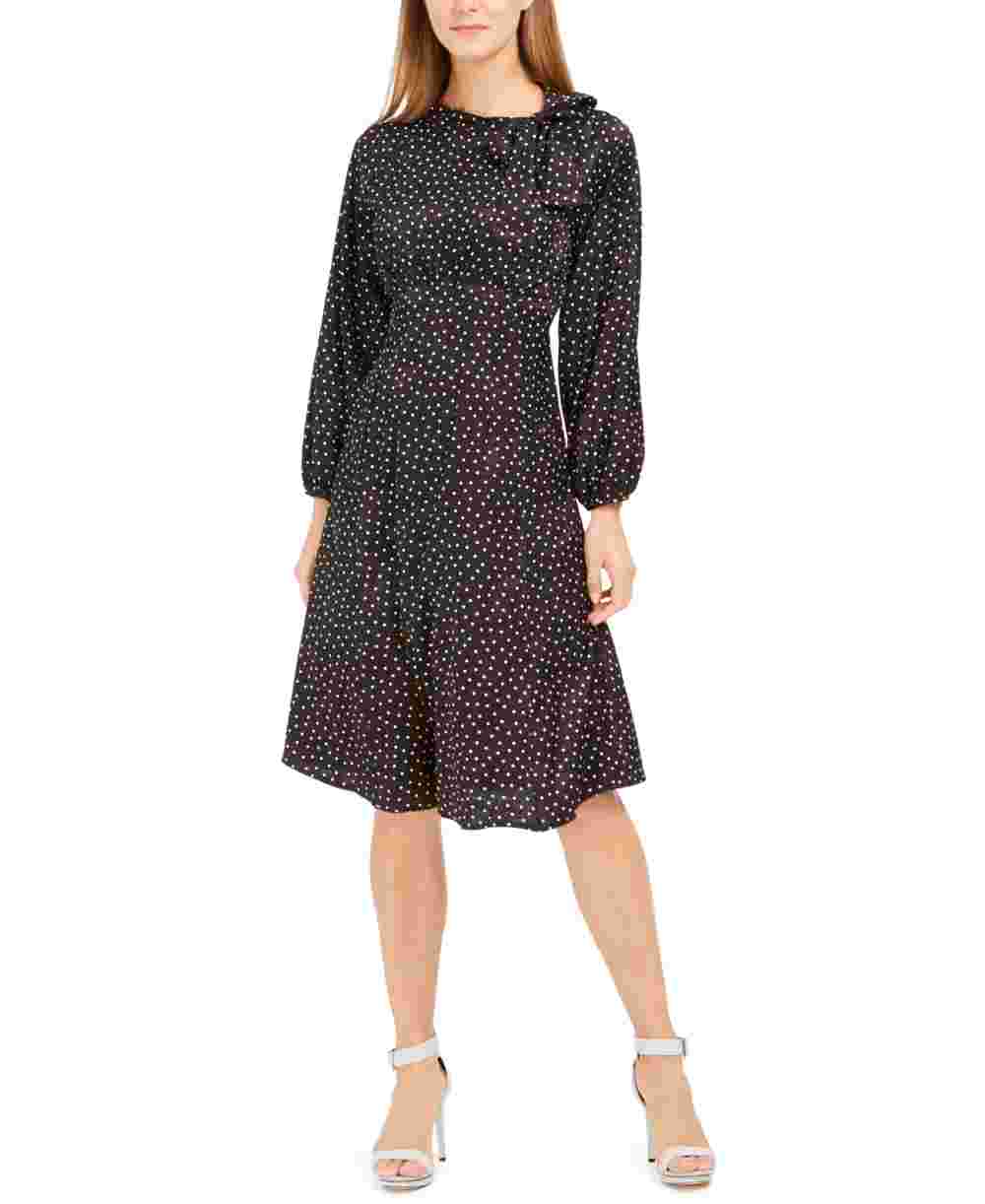 Calvin Klein Women's Tie-Neck Polka Dot Jacquard Dress Black Size 12