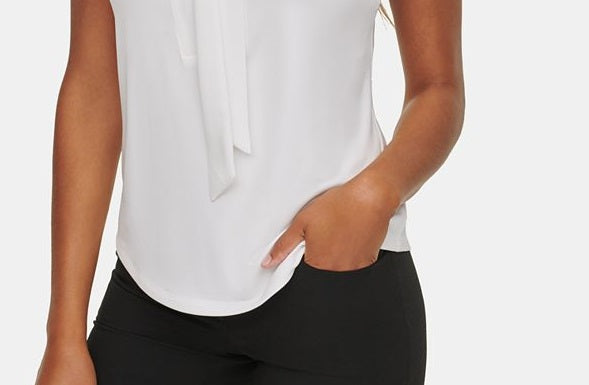 Calvin Klein Women's Tie-Neck Sleeveless Blouse White Size Large