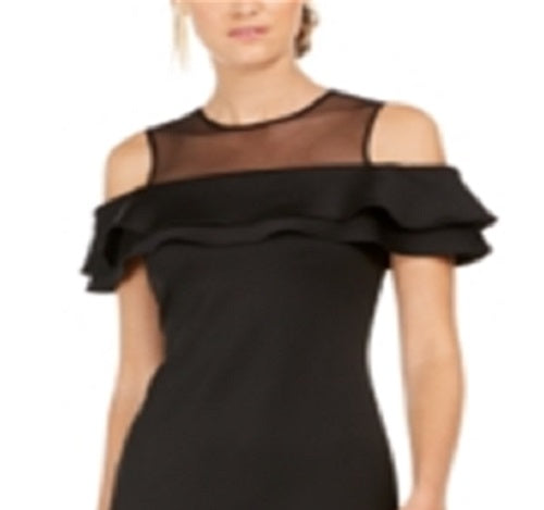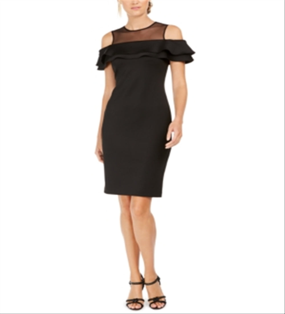 Calvin Klein Women's Zippered Short Sleeve Illusion Neckline Above the Knee Body Con Evening Dress Black Size 6