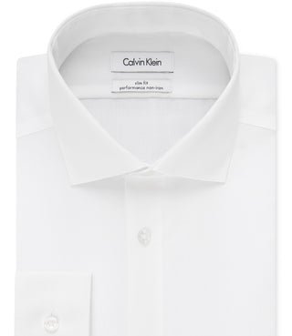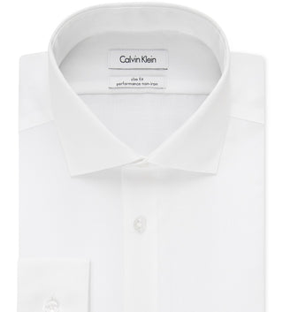 Calvin Klein Men's Slim Fit Non Iron Performance Spread Collar Herringbone Dress Shirt White Size 34X35