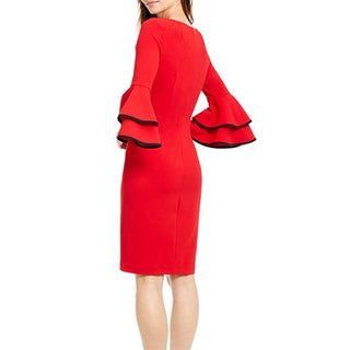 Calvin Klein Women's Bell-Sleeve Sheath Dress Red Size 6