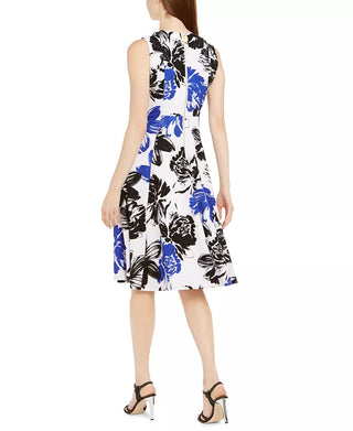 Calvin Klein Women's Big Floral Printed Midi Dress Blue Size 10
