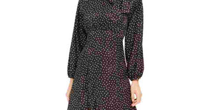 Calvin Klein Women's Tie-Neck Polka Dot Jacquard Dress Black Size 12