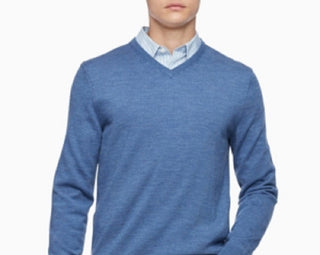Calvin Klein Men's Merino Wool Pullover V Neck Sweater Blue Size X-Small