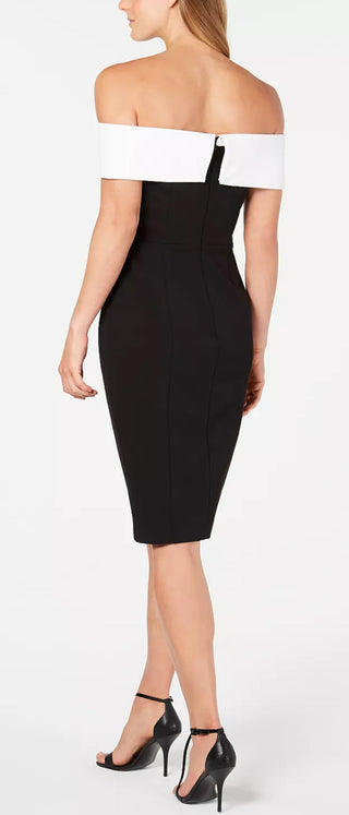 Calvin Klein Women's Off The Shoulder Fold Over Dress Black Size 6 Petite