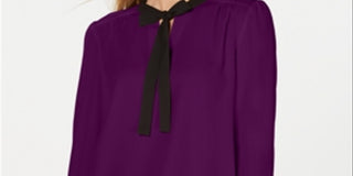Long Sleeve Contrast Bow Blouse Purple Size Petite S