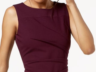Calvin Klein Women's Ruched Sleeveless Jewel Neck Above The Knee Sheath Wear To Work Dress Burgundy Size 8 Petite