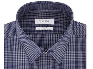 Calvin Klein Steel Men's Slim Fit Stretch Performance Non Iron Temperature Regulating Blue Check Dress Shirt Navy Size 15X34X35