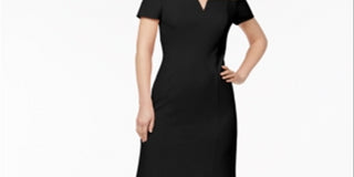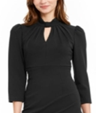 Calvin Klein Women's Zippered 3/4 Sleeve Keyhole Above the Knee Sheath Cocktail Dress Black Size 2