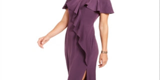 Calvin Klein Women's Zippered Bell Sleeve Off Shoulder Full-Length Fit Flare Formal Dress Purple Size 8