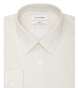 Calvin Klein Men's Regular Fit Allover Print Performance Stretch Dress Shirt White/Pink Size 15X34X35