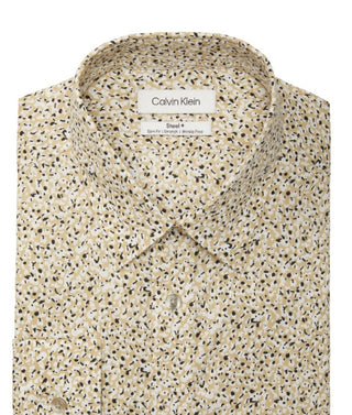 Calvin Klein Men's Steel And Slim Fit Stretch Dress Shirt Beige Size 14.5X32X33