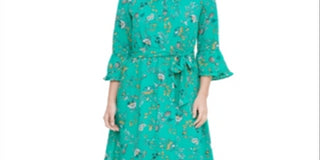 Calvin Klein Women's Printed Tiered Maxi Peasant Dress Green Size Small
