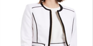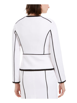 Calvin Klein Women's Pique Zip Front Collarless Blazer White Size 8 Petite