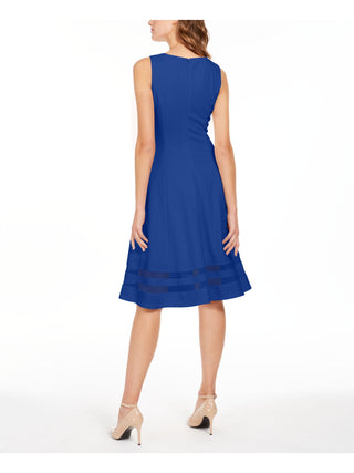 Calvin Klein Women's Illusion Trim Fit Flare Dress Blue Size 6