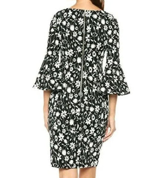 Calvin Klein Women's Below the Knee Body Con Black & White Floral Bell Sleeve Dress Size 14