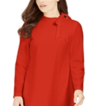Calvin Klein Women's Mandarin Collar Above the Knee Shift Dress Red Size 14