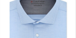 Calvin Klein Men's Xtreme Slim Fit Thermal Stretch Plaid Dress Shirts Blue Size XL