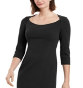 Calvin Klein Women's Zippered 3/4 Sleeve Scoop Neck Above the Knee Sheath Dress Black Size 2