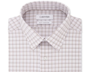 Calvin Klein Men's Slim Fit Stretch Collar Check Dress Shirt Beige Size 16X34-35