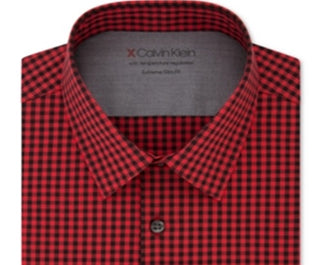 Calvin Klein Men's Extra Slim Fit Performance Stretch Temperature Regulating Check Dress Shirt Red Size L