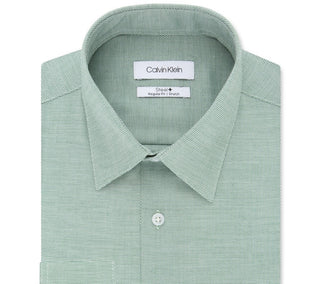 Calvin Klein Men's Steel Classic/Regular Non-Iron Stretch Performance Dress Shirt Green Size 34-35