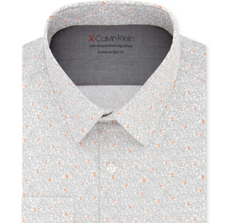 Calvin Klein Men's Patterned Collared Dress Shirt Orange Size 14-14.1/2_32-33_S