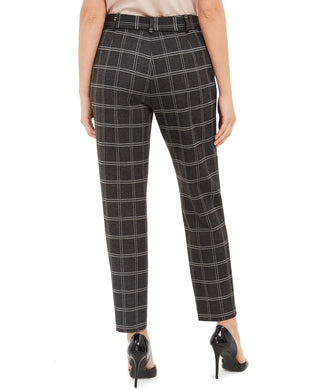 Calvin Klein Women's Windowpane-Print Belted Pants Gray Size 12
