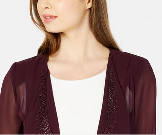 Calvin Klein Women's Illusion Sleeve Rhinestone Accented Shrug Purple Size Large