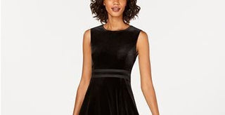 Calvin Klein Women's Velvet Illusion A Line Dress Black Size 16